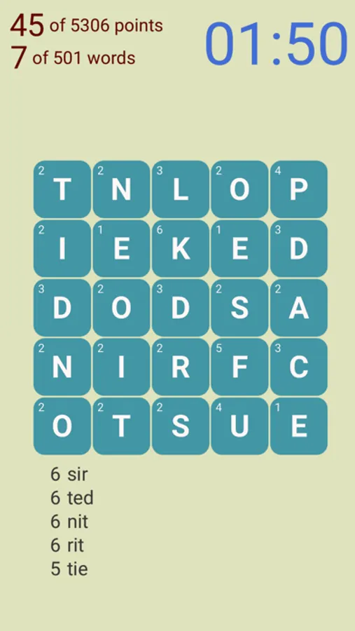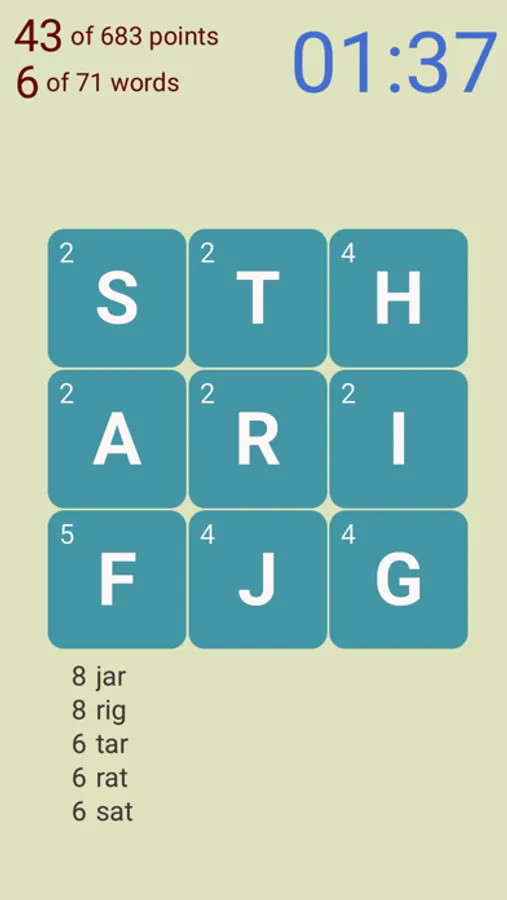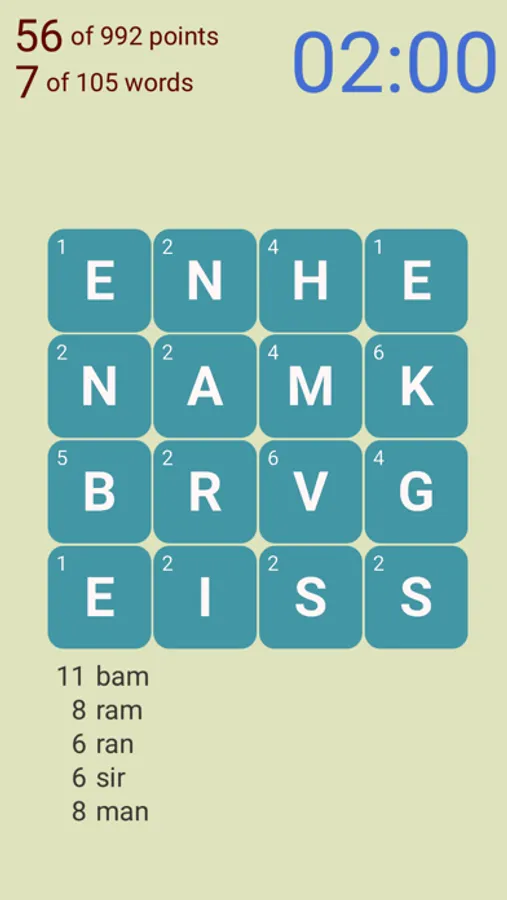 - In the limited time, find as many words in English as you can in the 4x4 letter grid.