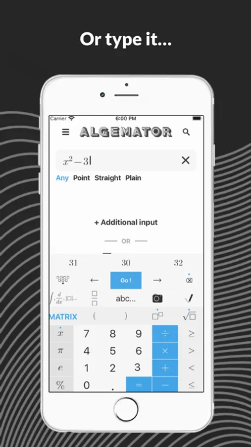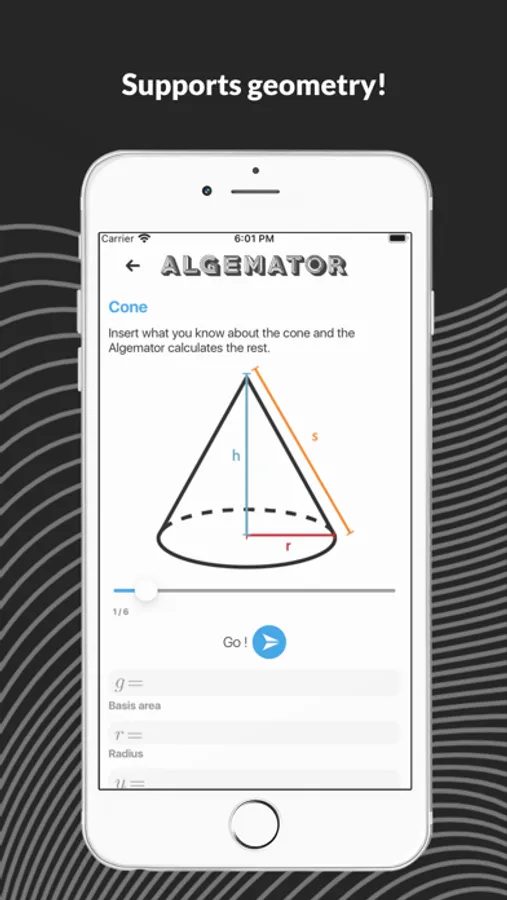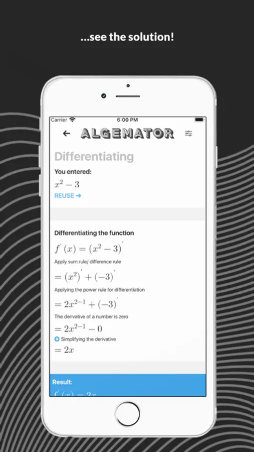 The Algemator solves your math tasks. Not only that but it also gives you the step-by-step solutions. The Algemator offers a wide range of functionality, from basics like manual addition or equation solving, to more advanced functionalities like functions or matrices. The Algemator even supports geometric forms. Just enter what you know about the form and the Algemator will calculate the rest!