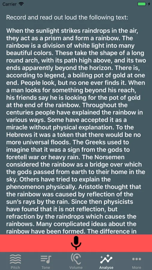 The voice pitch analysis works best with an external microphone! It will work without an external microphone but please be-aware that results may vary as the voice pitch analysis requires a relatively quiet environment and some phone microphones can pickup a lot of background noise.