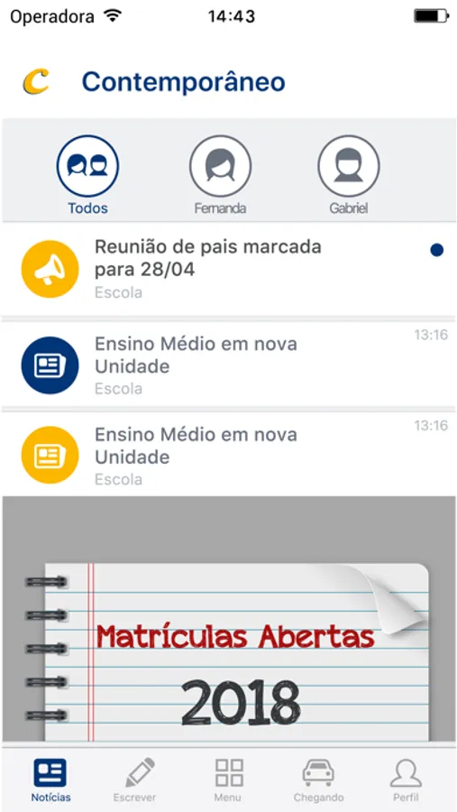 Com este aplicativo, os pais, responsáveis e professores poderão receber as últimas informações da escola, as notícias do dia a dia dos seus filhos e o calendário de atividades escolares.