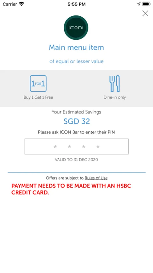 The ENTERTAINER with HSBC Programme is an application owned and operated by HSBC Bank (Singapore) Limited's ("HSBC") third party supplier, The Entertainer Pte. Ltd. and not HSBC. HSBC is not a supplier of the products and/or services provided by any merchant featured on the ENTERTAINER with HSBC Programme and will not accept any liability in relation there to