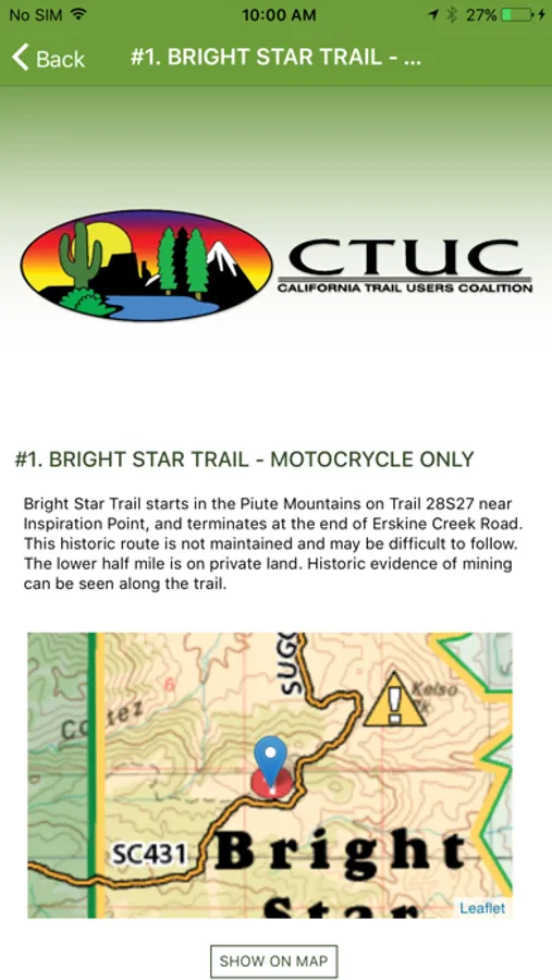 The CTUC OHV Trail Map California app provides in-app access to the entire line of OHV maps from the California Trail Users Coalition.