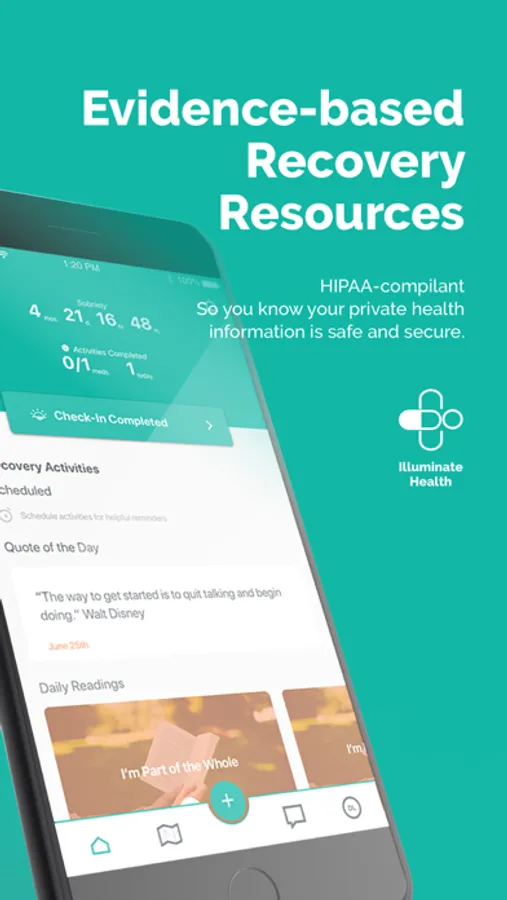 Illuminate Health’s Recovery Coach is a comprehensive app to help you achieve long-term sobriety. Our evidence-based recovery resources were designed by addiction treatment experts. It is the only app on the market that incorporates both proven medical and wellness recovery tools. So regardless of the type of recovery program you prefer, abstinence-based, mindfulness-based, MAT therapy, or another, Recovery Coach can help you live a substance-free life