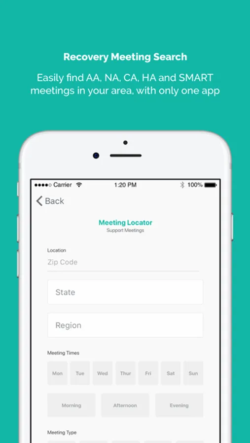 Recovery Meeting Search – Easily find AA, NA, CA, HA, and SMART meetings in your area, with only one app. Search with extensive filters and share the meeting details with others in recovery.