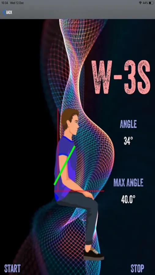 3 - Remove Wiva sensor from towel and put it on L5 . Execute a frontal flex of the trunk for measure the pelvis tilt . This measure is very important for define saddle form.