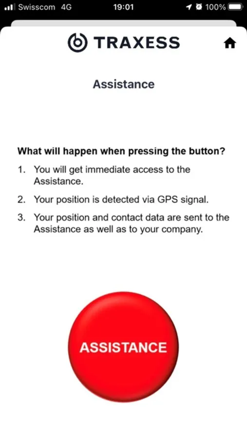 The app enables users to reach the hotline of the commissioned assistance provider with a single click. In an emergency, it sends location data to the safety officers so that they can take the necessary measures.
