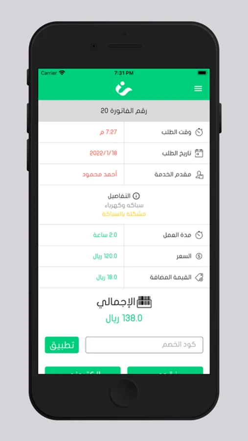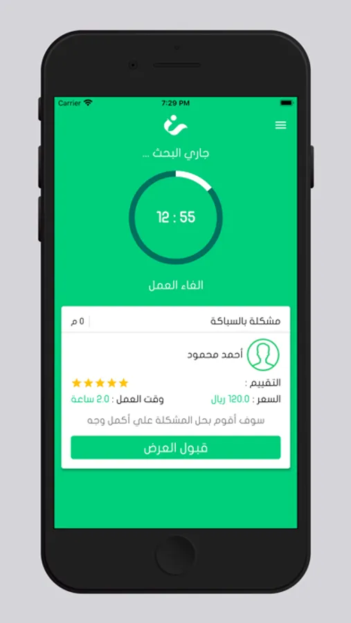 The (Iserve ) app shows the beneficiary all the offers containing (the price - evaluation of the service provider - the distance - Instagram - maroof ) and the customer can choose any offer that suits him among those offers.