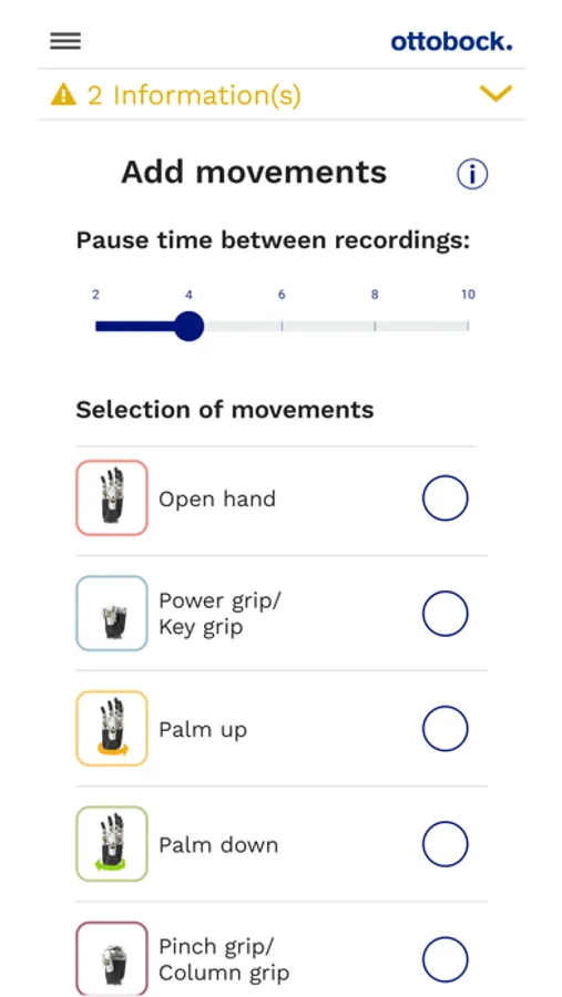 As a user: record individual movement patterns and adapt the prosthesis control to your everyday situations.
