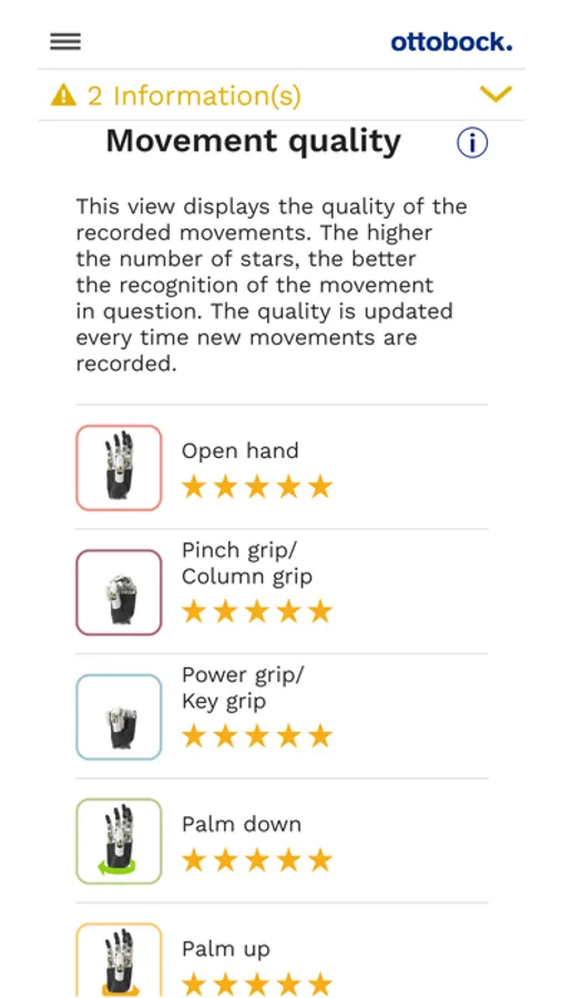 In addition, you can share prosthesis data with the relevant qualified personnel. Once you have given your consent, they will receive information about the current state of the prosthesis, system settings and usage data in order to give you the best possible remote support in the event of problems.