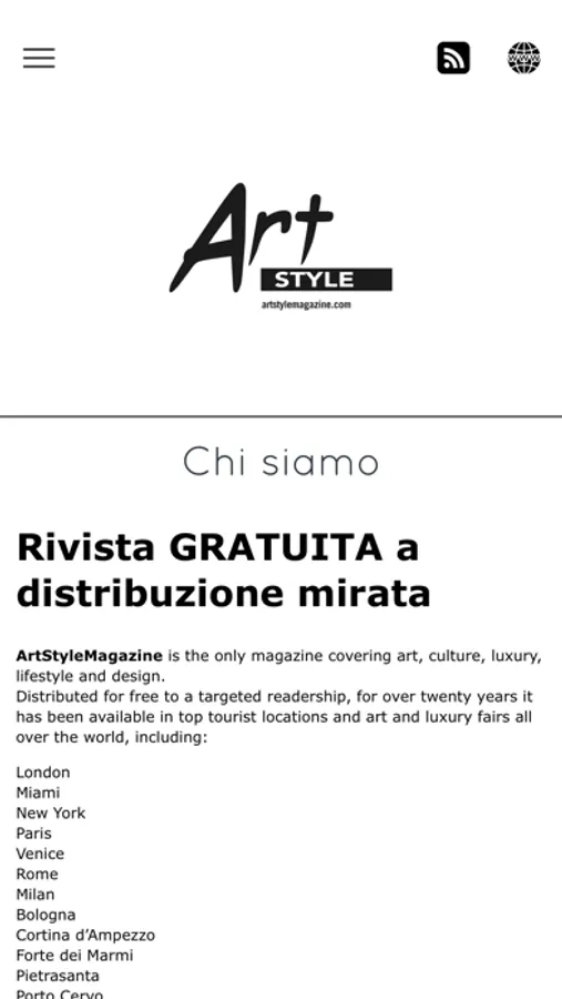 ArtStyleMagazine è l’unica rivista che tratta di arte, cultura, luxury, lifestyle e design.