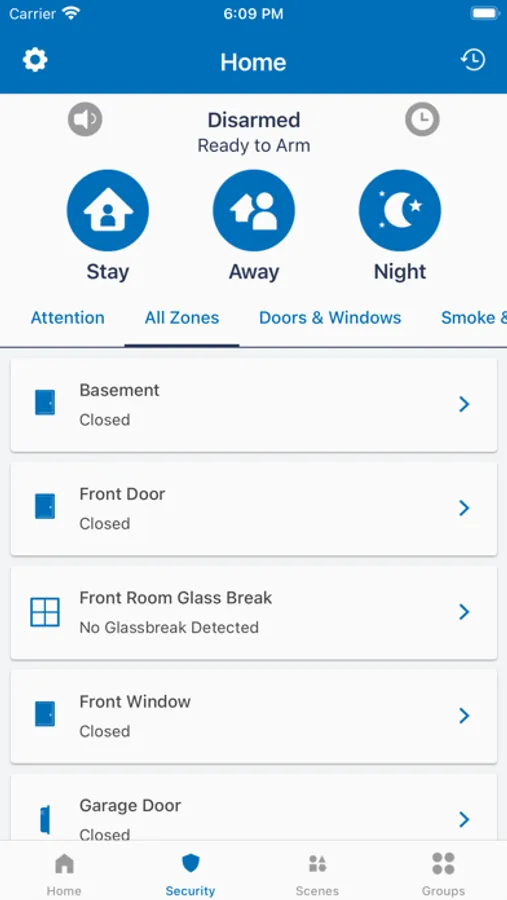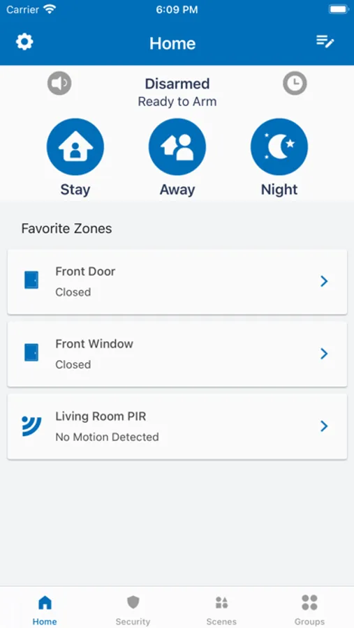 - 3 arm options for your needs: stay, for when you are inside your residence; away, for when you are away and night mode