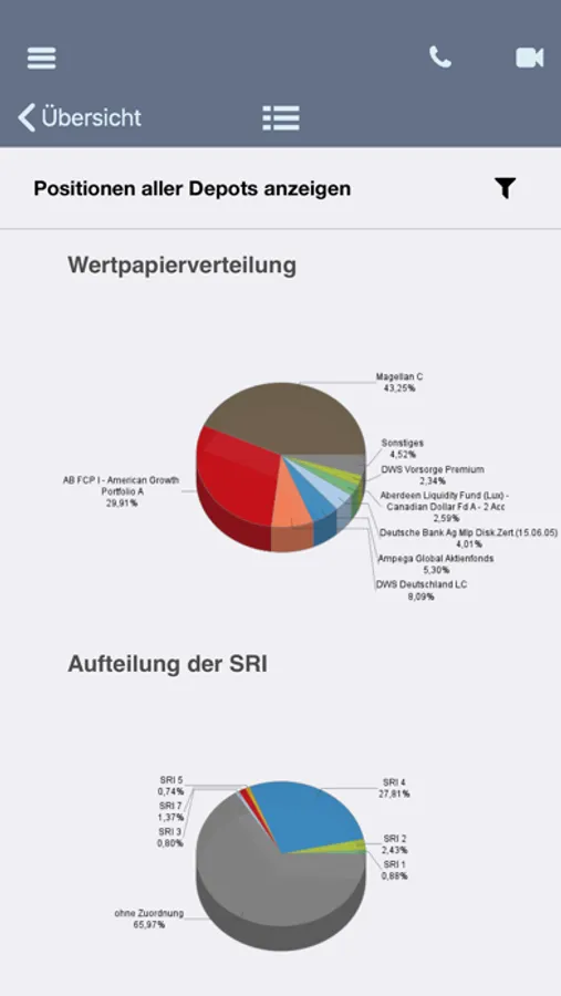 - Konsolidierte Vermögensübersicht inkl. aller Fondsanteile, Versicherungen, Beteiligungen und Bankkonten