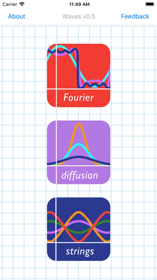 Waves is an interactive environment for exploring graphical solutions to partial differential equations. Waves currently consists of three activities that explore Fourier series as well as series solutions to the heat and wave equations. Fourier is a tool for plotting a Fourier series that best approximates a periodic function. Diffusion plots solutions to the one-dimensional heat equation in space and animates the time evolution. Waves plots solutions to the one-dimensional wave equation in space and allows. In each of these activities you can specify the appropriate boundary and/or initial conditions. The app contains built-in examples as well as the option to save your work for future analysis. You can use Waves for homework, in-class activities or a new research project.