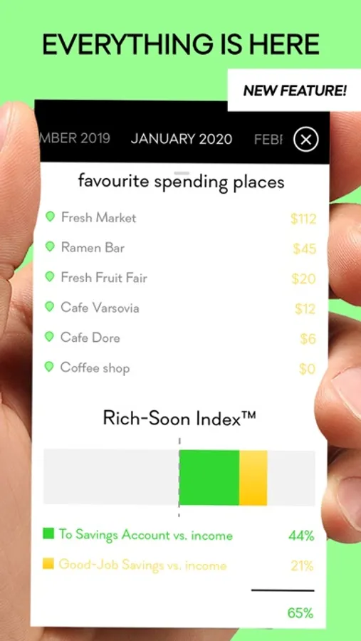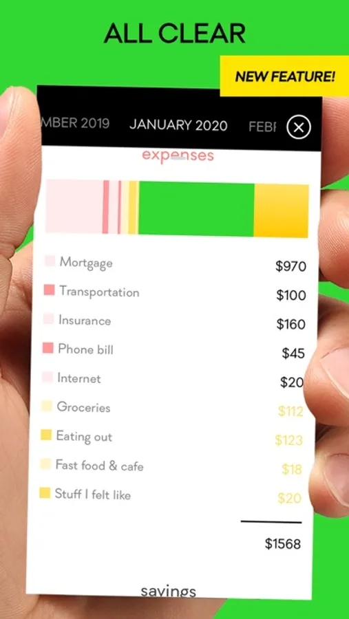 3. BEAUTIFUL STATS - you'll understand your finances at a glance - where your money goes, how well you did vs. what you planned (GOOD-JOB SAVINGS™) and so much more interesting data about your money-habits