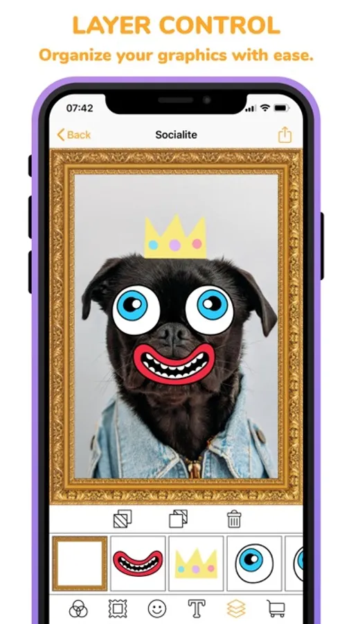 Socialite offers fast photo embellishing fun with an international flair. One-tap optional cropping squares your image for platforms that prefer this. Change up the mood if you wish with a choice of artistic filters. Select from dozens of frame choices to add whimsy, elegance, opulence—choose a look to match your mood. Tap open the sticker drawers to see an abundance of unique choices you won’t find in any other app. The Socialite team designs to delight and is excited to bring you images, places, and sayings from around the world. Want a caption? Typefaces include a bevy of fonts perfectly suited to any occasion.