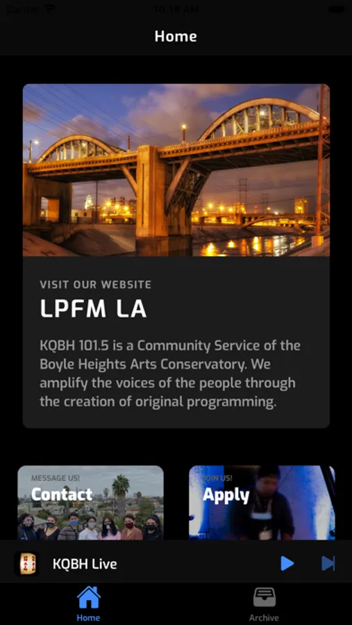 Currently only serving KQBH, LPFM LA is an app that serves a live stream of 101.5 which is a hyperlocal community driven radio station centralized in Boyle Heights, Los Angeles.