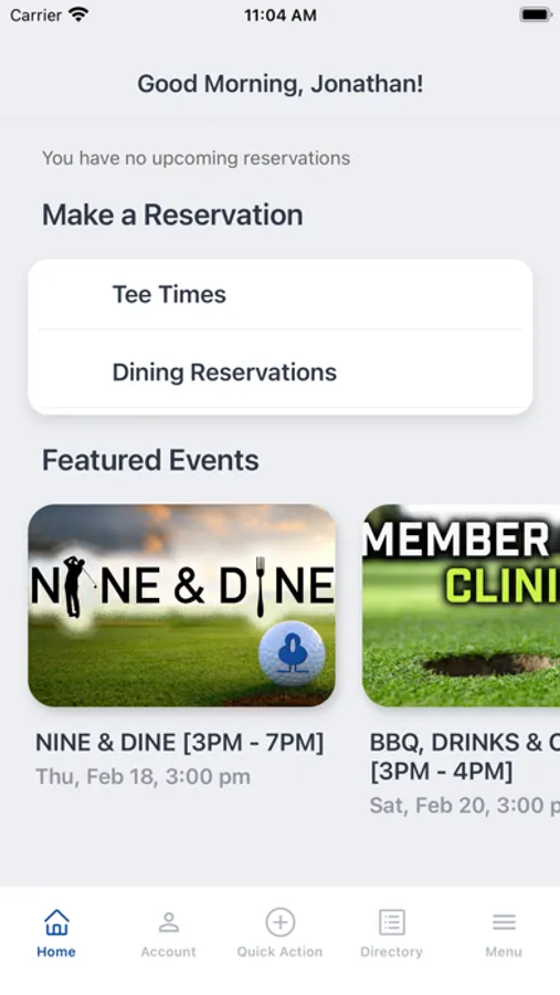 - Make golf and dining reservations