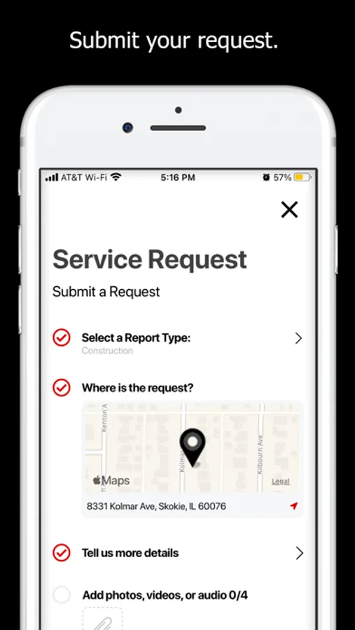 Access Skokie is a real-time mobile civic engagement tool. Access Skokie provides a free, simple and intuitive tool to report an issue, ask a question or leave a comment with the Village of Skokie with the option to include a photo with GPS coordinates. Sometimes a picture can tell a thousand words. Downtown Access Skokie today!