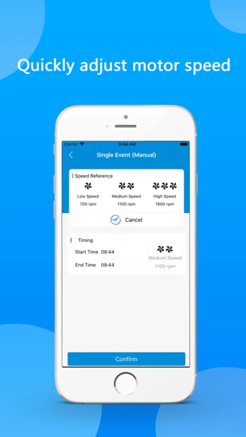 Advantageman is a App that users can control the smart motor through their moble phone. Use your iphone connect the motor with Hotspot, then user can start the motor, speed up, speed down, power off, also can schedule the motor to run with different speed in a peroid of time.