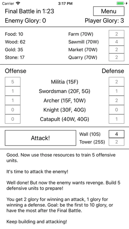 A Few Minutes of Glory is a quick, text-based, yet still challenging distillation of THAT game, to satisfy your RTS craving on the go.