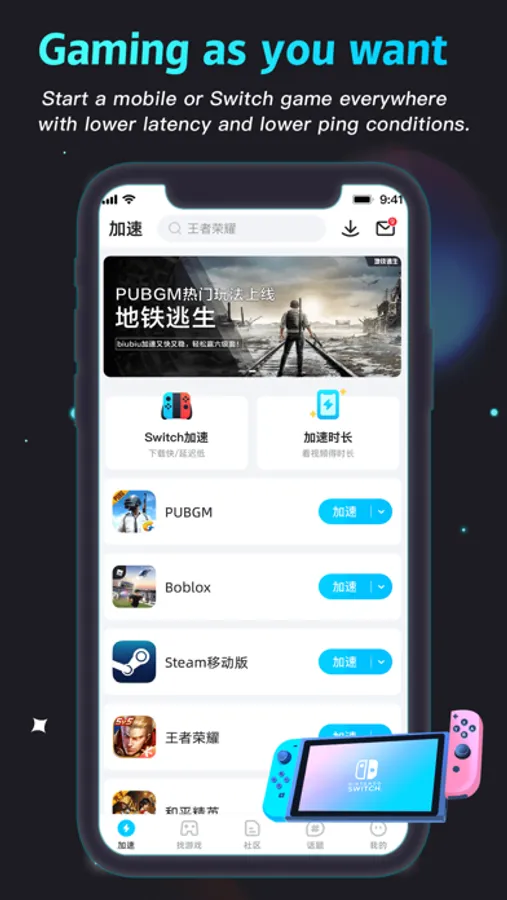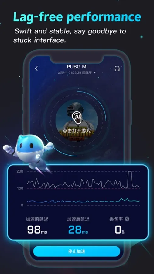 Biubiu Game Booster - a completely free professional mobile game accelerator, reducing data loss and latency in one tap.