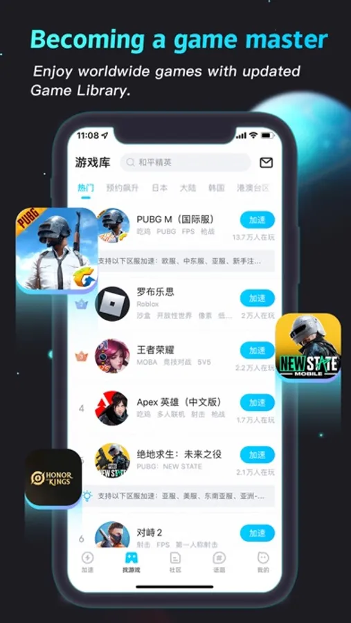 Biubiu can accelerate all the hit mobile games, including PUBG Mobile, Asphalt 9, Arena of Valor, Fate/GO, Houkai 3rd, Call of Duty, Free Fire, Fortnite, Cross Fire and so on.