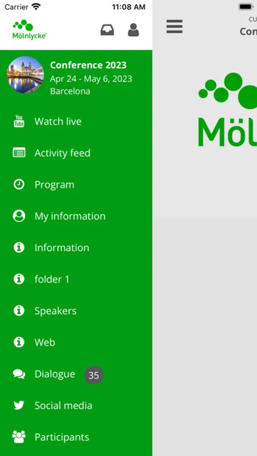 This is our event app. It will be used for showing the agenda, speakers and other practical information about the event. In the app you will be able to answer polling questions as well as asking questions to the stage. The app will be used to send out push notifications with updates before and during the event. We hope you will enjoy using these and many more features in the app during the event.