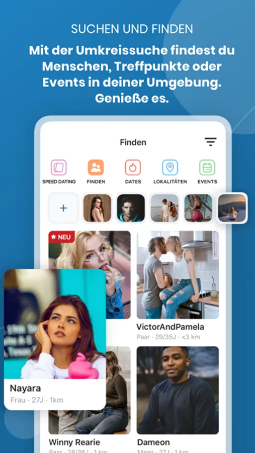 Finde mit POPCORN einfach und kostenlos neue Kontakte in deiner Umgebung. Entscheide, ob du mit Männern, Frauen oder Paaren in Kontakt treten möchtest. Du kannst nach Alter filtern, dir nur Mitglieder anzeigen lassen, die ein Bild hochgeladen haben und hast viele weitere Filteroptionen.