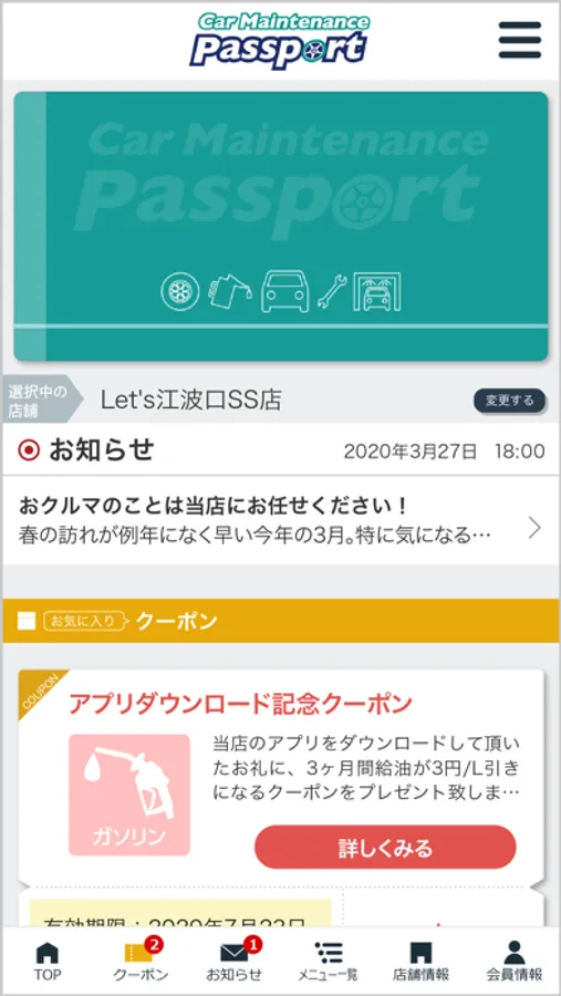 江波日石株式会社アプリ「江波日石カーメンテナンスパスポート」をご覧いただき誠にありがとうございます。