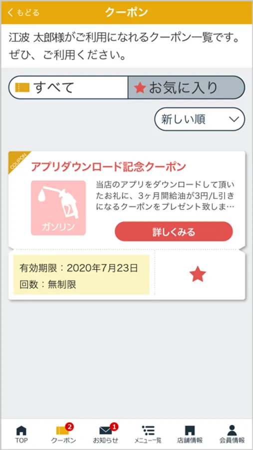 また江波日石株式会社の店舗で利用いただけるお得なクーポンや各種メニューの割引情報も配信しております。
