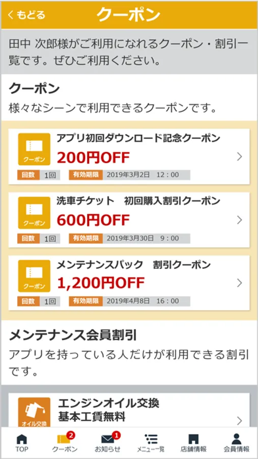オイル交換などお車のメンテナンスもクーポンで更にお得にご利用頂けます。