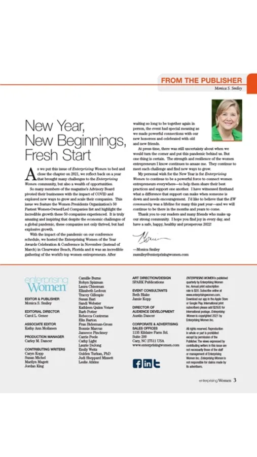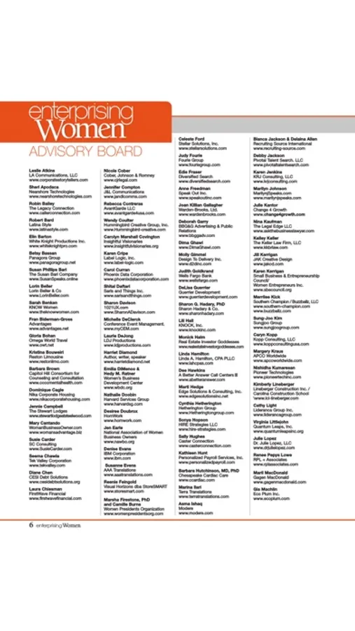 Enterprising Women formed its own “tribe” more than 17 years ago—just a couple years after the magazine was launched under the ownership of our publishing company. Our tribe is a strong national and international Advisory Board that guides our mission, provides valuable content for the magazine, and connects us with our shared business interests and bonds of friendship.