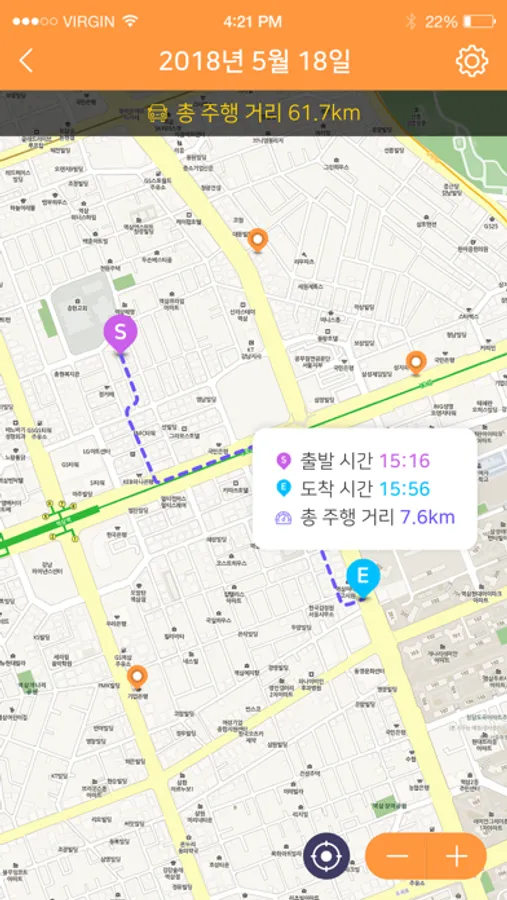 연속된 GPS 정보를 통한 운전자의 운행을 수치로 표출하여 안전 운행 점수를 제공 합니다.