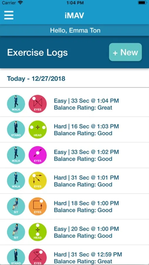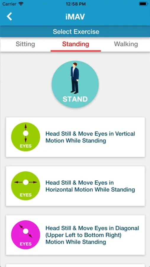 The app has a few recommended exercise user can do sitting, standing, or walking. Users can track their daily exercises and see if over time, there is an improvements to their vertigo issues. After each exercise, users can rate their balance so they will have a log over time their improvements.