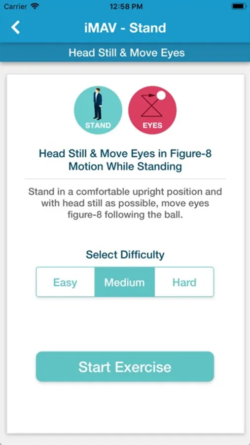 Users either can hold the device in front of them or get another person to hold it for them as they perform the exercises. Each exercise comes with a detailed instructions (i.e hold head still and move eyes only) on how to perform it effectively.