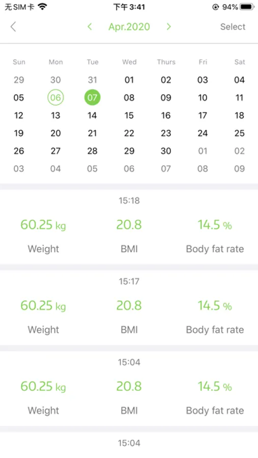 1.F-Tracker will share the weight data (weight/body fat/bmi/weight) after each weighing to Apple's health center.