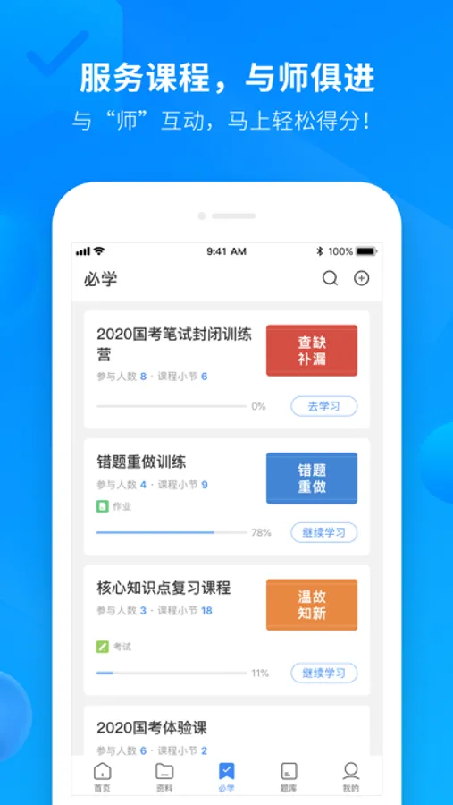 中公开学APP是为中公学员和中公师资精心打造的课堂助手,在线下学习的同时,为学员提供个性资料阅读、在线练题点评、教学成长档案等线上服务,让学员真正做到智能学习、轻松上岸。
