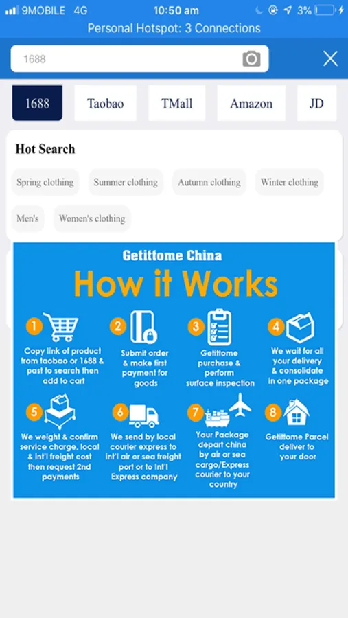 This app enable shoppers to buy directly from top China merchants on Taobao, 1866, TMall, Amazon, JD stores and we would ship your items to wherever you are in the world.