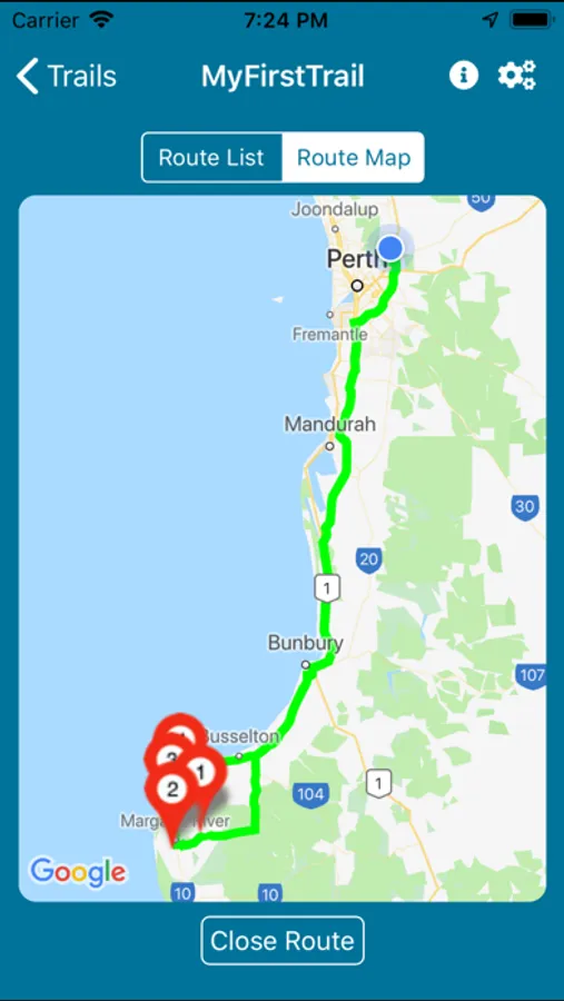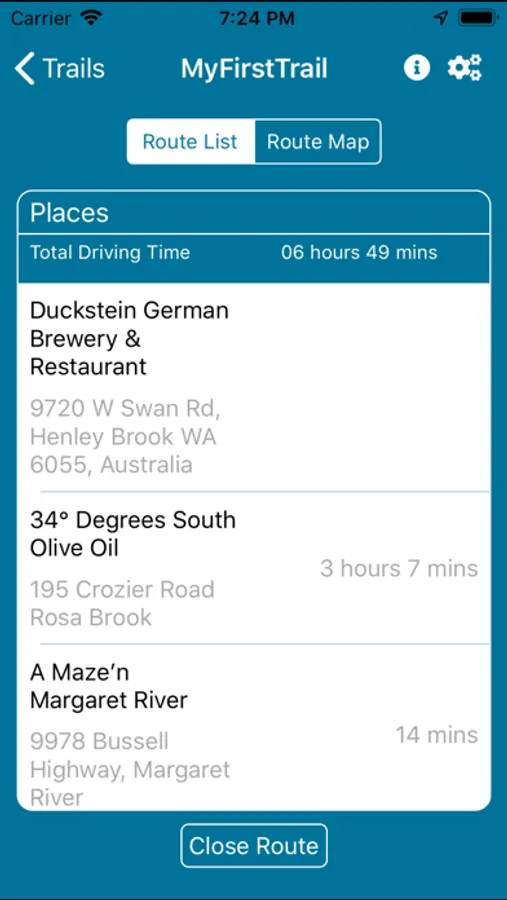 MyDrives is an interactive trail guide for the Margaret River region in Western Australia. Create your own driving trails from a list of places, see your trail on a map, and then go for a drive!