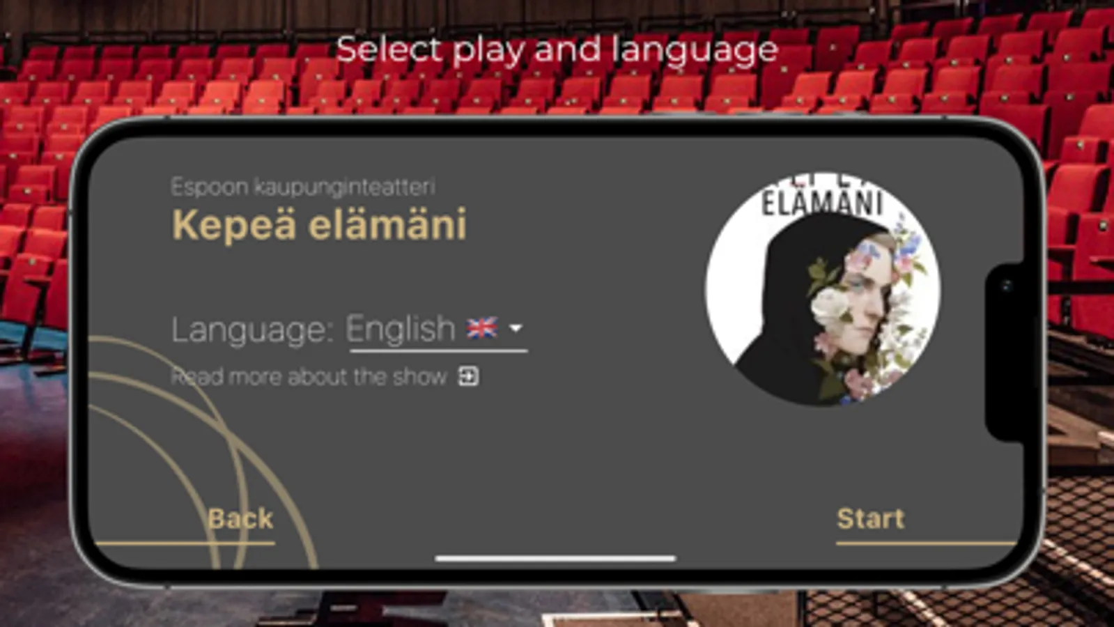Enjoy Espoo City Theatre’s performances in your own language with our subtitle-translation app.
