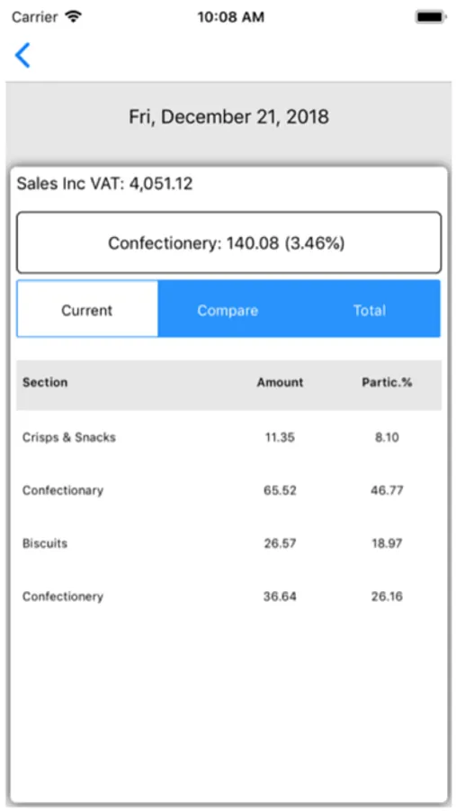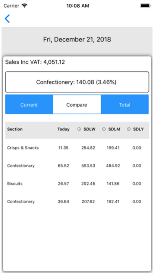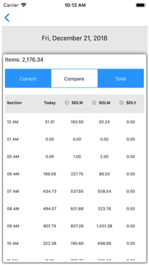 In the Department Section. The 'Compare' Tab will allow user to see Same Day last week ,same day last month, Same Day last year values.