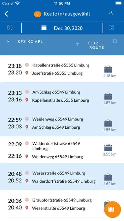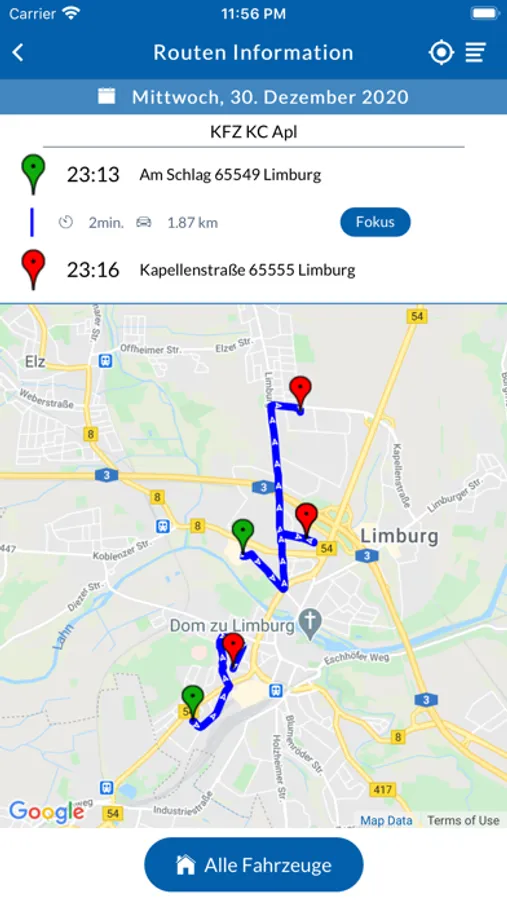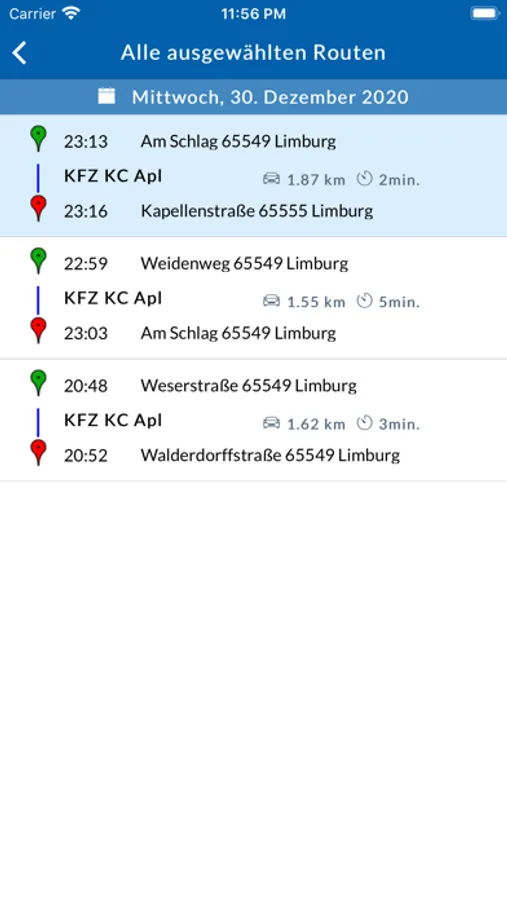 - Alle Fahrten an einem bestimmten Tag für das ausgewählte Fahrzeug anzeigen