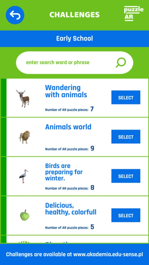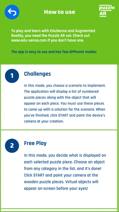 The application requires the use of AR Puzzles markers available at www.edu-sense.com