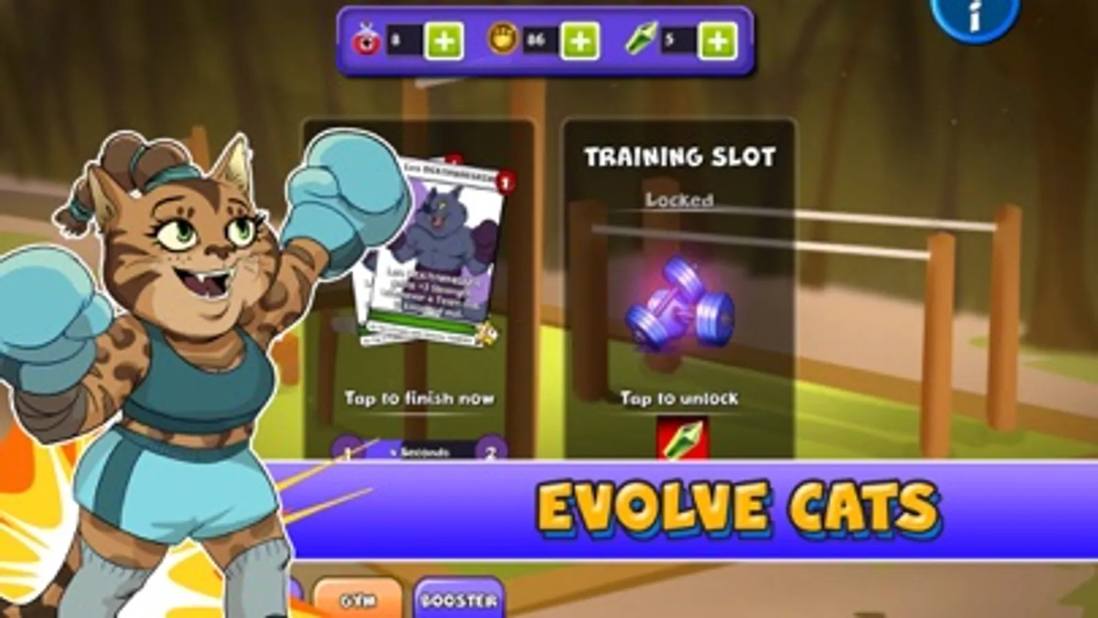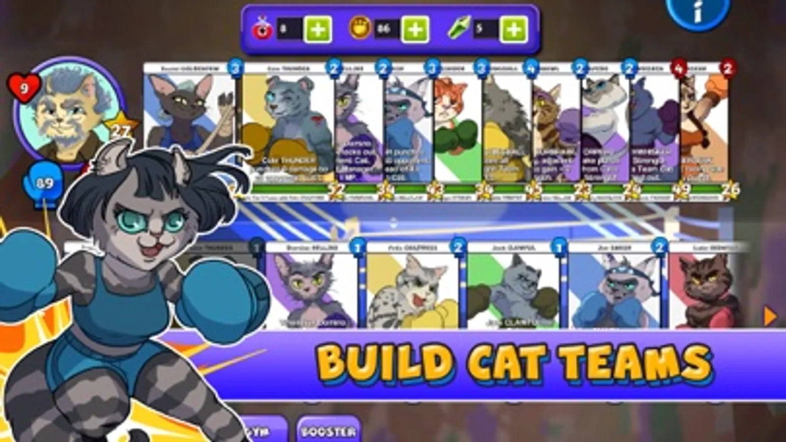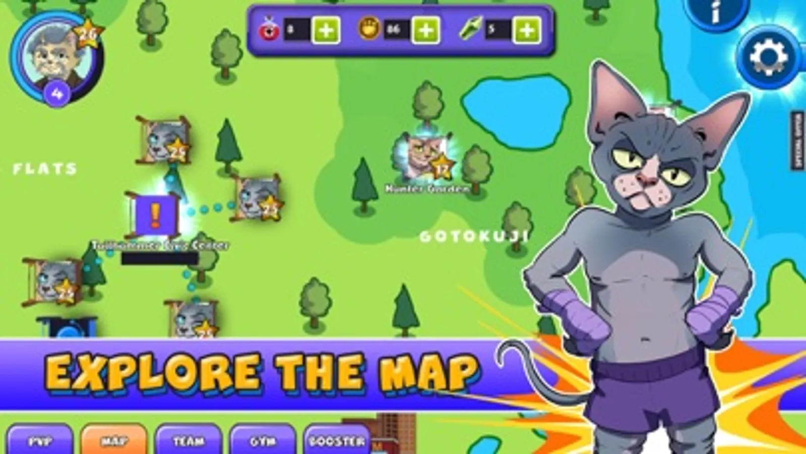 Collect, evolve and fuse boxing cat cards. Discover more than 100 cute, mean, proud, cocky, crazy, angry, thrashed, flirty boxing cats and boxing cat managers. Set up boxing fights in your neighbourhood's venues and unlock more venues on the map. Become the greatest boxing cat manager of all time. Build boxing cat card decks to attack other managers and to fend off their attacks. Climb up the monthly boxing cat managers' rankings.