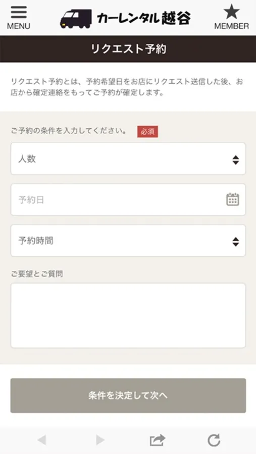 ご利用の目的やご希望の日時を指定して送信するだけで予約を依頼できます。