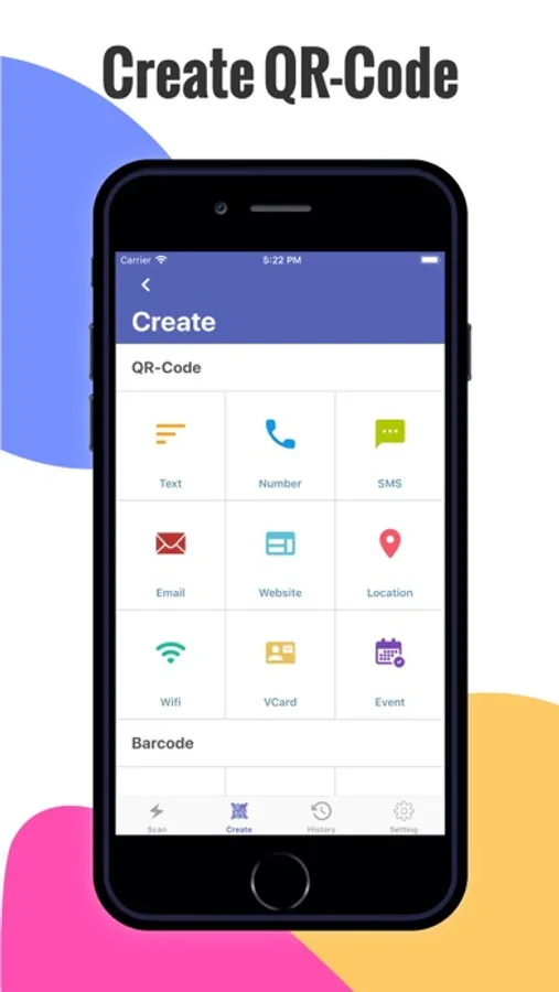 Rapid QR Code & Barcode Scanner can scan and create QR Code - BarCode types including: