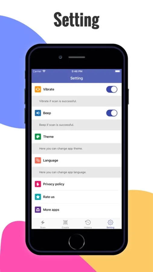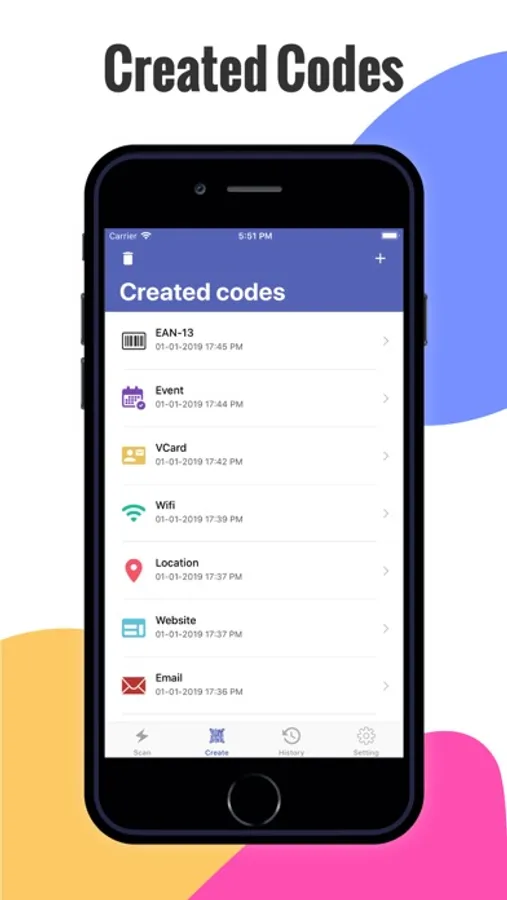 It also allows to find any previously scanned QR Code at any time in your scan history.