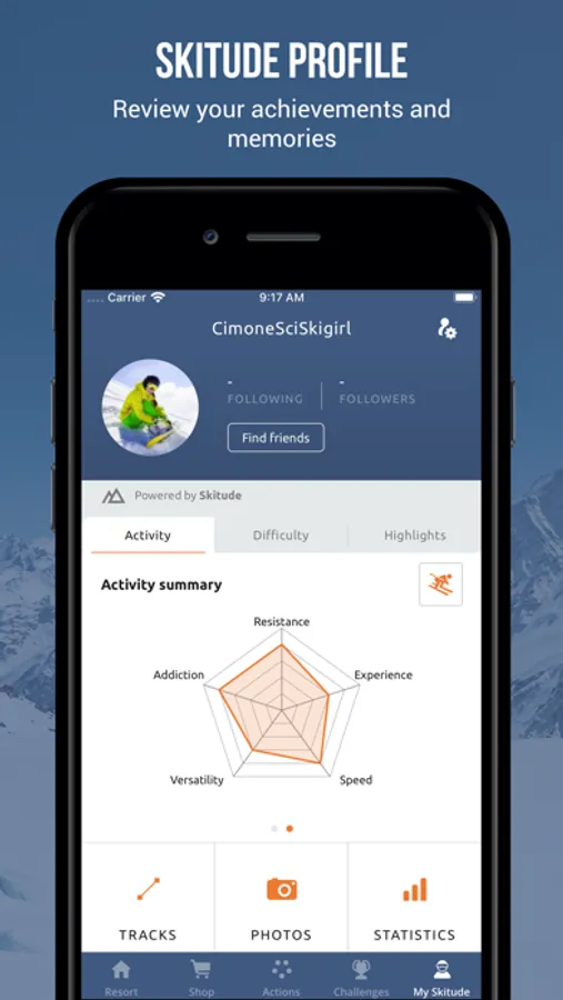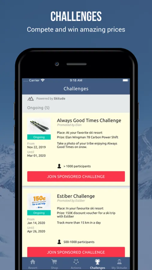 Set up your Skitude profile to track your activities using the GPS tracker. Find out where you are in the season's rankings and try to complete the challenges to be in with a chance of winning great prizes.