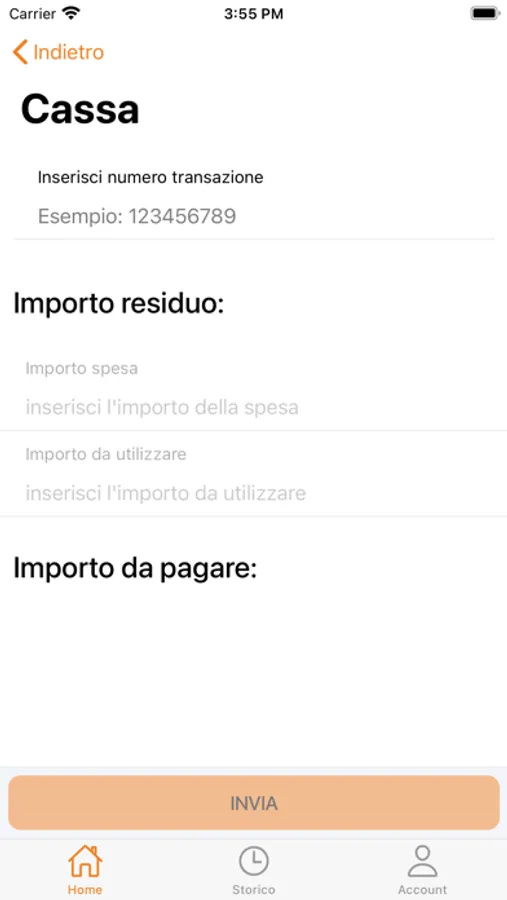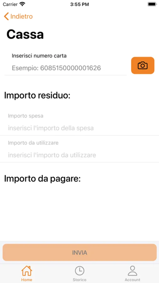 fotografa la carta , cattura il numero e digita l'importo da sottrarre.