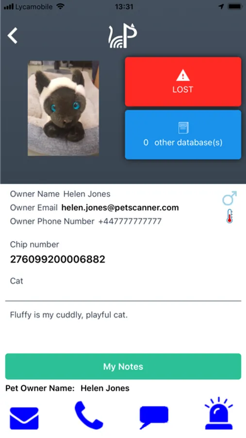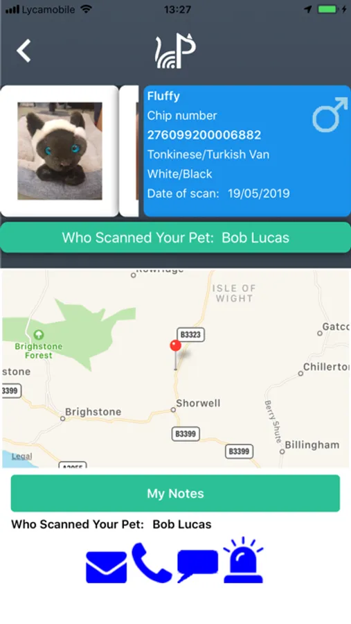 If it is registered with PetScanner, it will display the contact details of the owner.